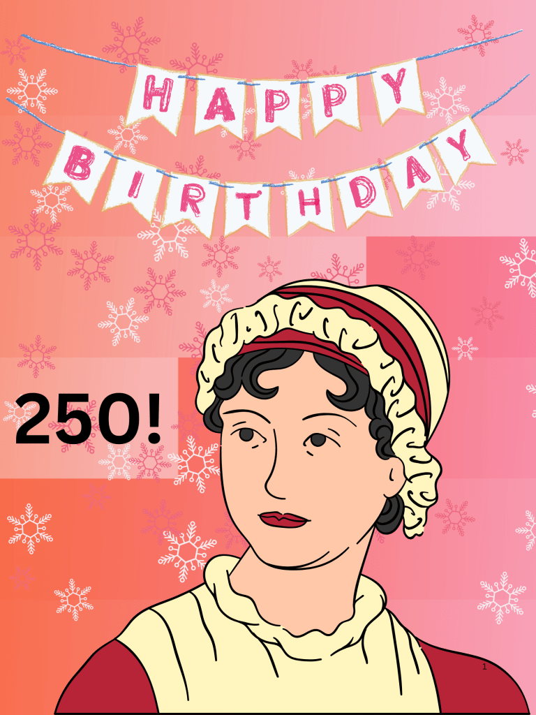 First of all, did you know that in less than a week we’ll be celebrating the 250th anniversary of Jane Austen’s birth? She made her debut at the Steventon rectory on December 16th, 1775, the seventh child born to Rev. George and Mrs. Cassandra Austen in Hampshire, England.