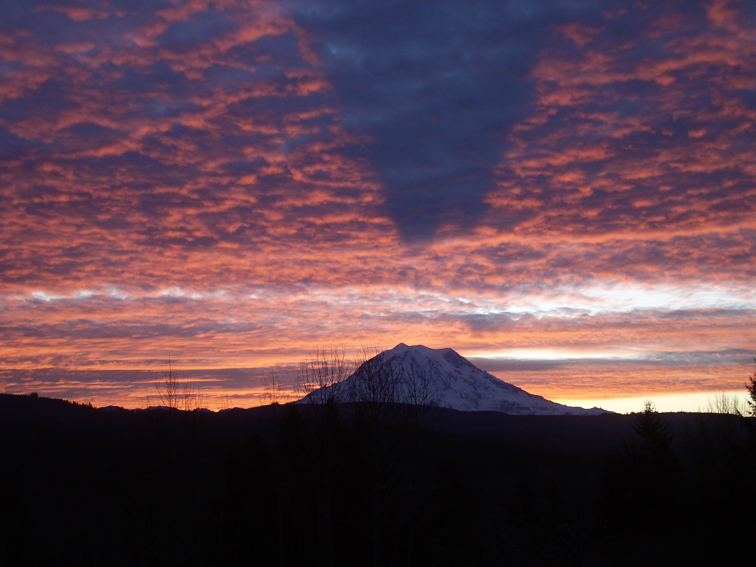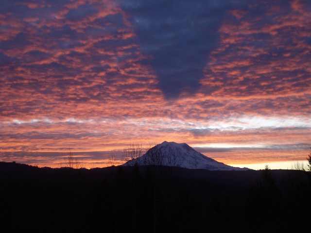 This sunrise this morning, framing Mt Rainier (with its shadow cast on the underside of the clouds), made me wish for the eloquence of a poet to describe its glories. Jane Austen had surprisingly little to say about mountains, I discovered, and almost nothing on sunrises. This is the best I could find: