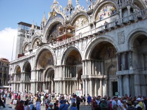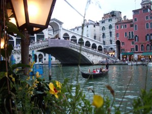 [top to bottom: the Grand Canal, Basilica San Marco, view from campanile San Marco, gondolier, Rialto bridge] The header photo on this site is also from Venice – a balcony overlooking the Grand Canal.