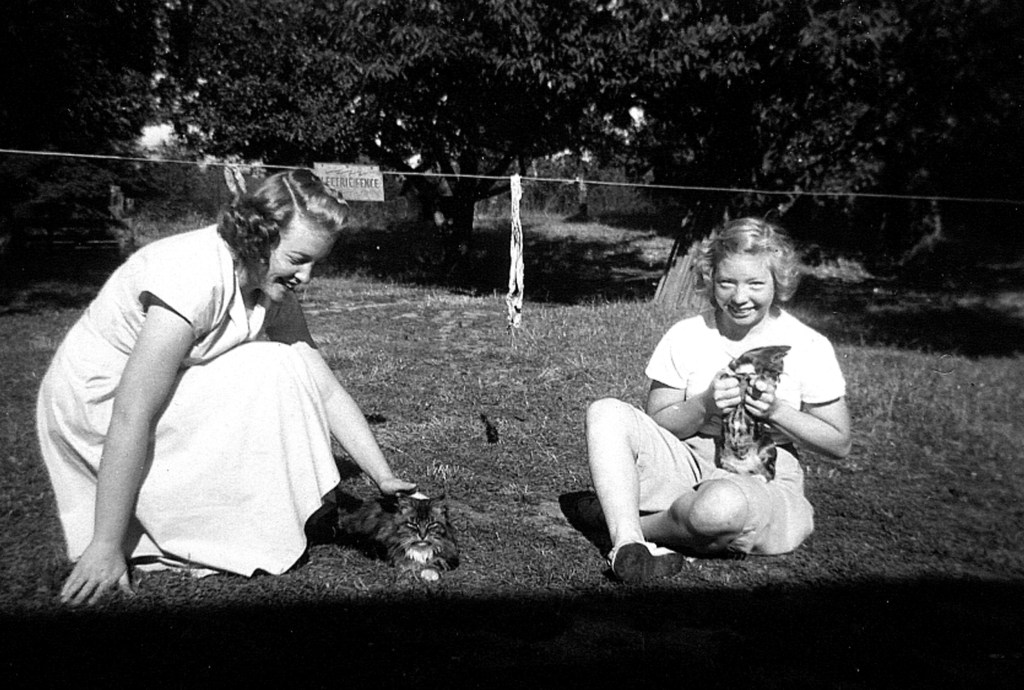 There were lots of childhood pictures of my mom with her younger sister, reminding me of how close they always were (and of how close I am with my own sister). This one also speaks of her life-long fondness for cats, one that I also share.