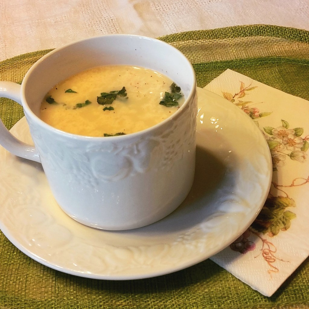 Genuine white soup was pretty labor intensive, calling for veal stock and copious amounts of ground almonds, which is why preparations had to be made in advance. The modern adaptation of the recipe substitutes chicken stock and omits the ground almonds altogether. (Ingredients: chicken stock, eggs, grated Parmesan cheese, white bread crumbs, nutmeg, salt, pepper, with basil leaves for garnish.) It was good, but someday I would like to try a more authentic version.